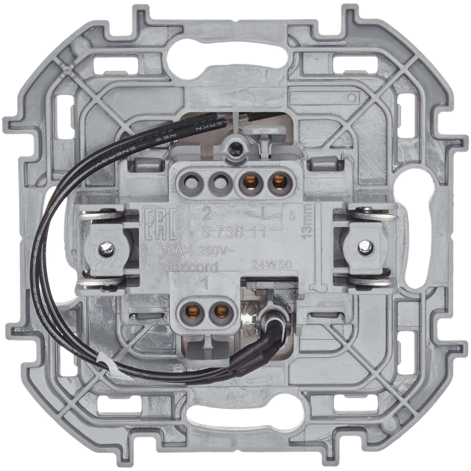 Выключатель одноклавишный с подсветкой/индикацией Legrand Inspiria для скрытого монтажа, цвет Слоновая кость, номинальный ток 10 А, напряжение 250 В. Предназначен для установки в электрических сетях жилых и общественных зданий и используется для управления приборами освещения, вентиляции и т.д. Оснащен светодиодной лампой для подсветки или индикации. Особенности изделия: - Компактный механизм с глубиной всего 20 мм. комфортно размещается в различных монтажных коробках. - Материал клавиш - глянцевый пластик АБС, стоек к выгоранию и загрязнениям. - Все токоведущие части выключателя имеют защиту от случайного прикосновения. - Безвинтовые зажимы для присоединения проводов обеспечивают быстрое подключение и отключение, гарантируют надежное и долговечное соеднинение и не требуют обслуживания. - Удобные широкие толкатели облегчают работу по демонтажу провода. - Улучшенная эргономика снижает вероятность искрения при коммутации светодиодов. - Ход клавиши короткий, не громкий. - Универсальная LED-лампа белого цвета с низким энергопотреблением 0.125мА и возможностью замены - Благодаря свободной схеме подключения, лампа подсветки либо облегчает ориентирование в темноте, либо информирует о включении нагрузки. - Клавиша оборудована линзой для заметного светового сигнала подсветки или индикации.