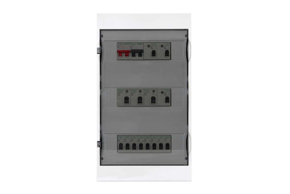 Распределительный щиток Systeme Electric серии City9 Box предназначен для установки аппаратов защиты и управления бытовой электроустановки. Щиток вешается на стену, имеет 3 DIN-рейки для установки 36 аппаратов по 18 мм. Прозрачная дверь щитка может быть установлена с правой или левой стороны. Щит Systeme Electric City9 Box на 100% совместим с модульным оборудованием DEKraft и Systeme Electric.