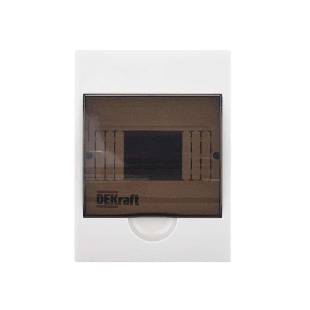 Корпус модульный серии ЩРН-П Dekraft; навесной; номинальный ток - до 100 А; исполнение - 6 мод. х 18 мм, 1 ряд; ВхШхГ – 200х148х96 мм; материал – ABS-пластик; цвет – белый; дверь – прозрачное пластиковое стекло; степень защиты – IP41. В комплект поставки входят оцинкованные DIN-рейки, шины N и PE с держателями, наклейки для маркировки модульного электрооборудования, дюбели и винты для крепления корпусов. Корпуса модульные применяются для установки в жилых и промышленных зданиях.