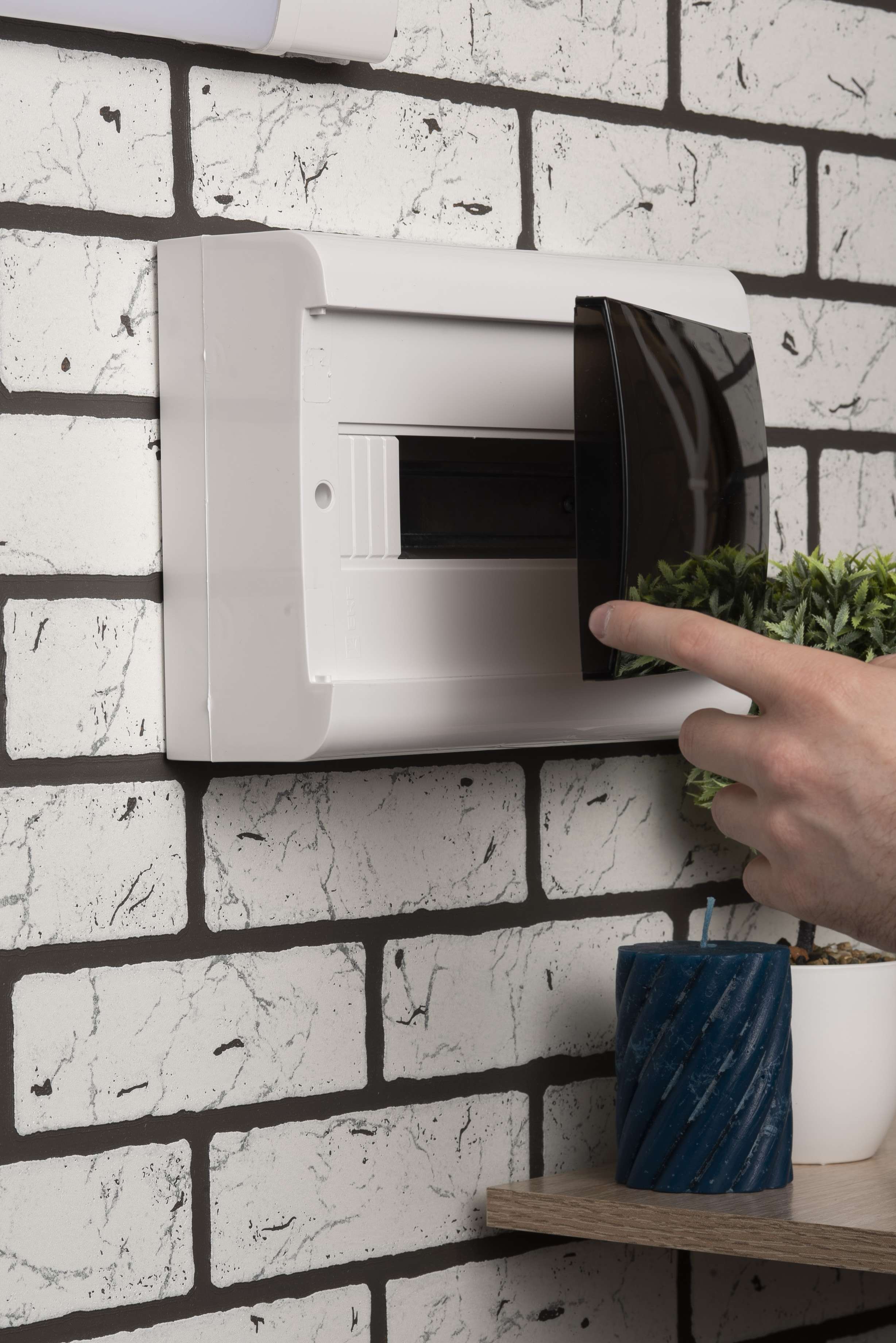 Щиты распределительные пластиковые SlimBox EKF PROxima предназначены для установки модульной аппаратуры: автоматических выключателей, УЗО, таймеров, счетчиков электрической энергии и т. д. Используются для электромонтажа в жилых, административных, торговых помещениях. Электрощиты изготовлены из прочного ABS-пластика глянцевого белого цвета. Имеют полноразмерную затемненную дверцу, что позволяет им эстетично вписаться в интерьер жилых и офисно-торговых помещений. Основание корпуса у навесных щитов имеет малую высоту, что делает сборку щита и подключение проводов более удобным за счет большего свободного пространства для сборщика.