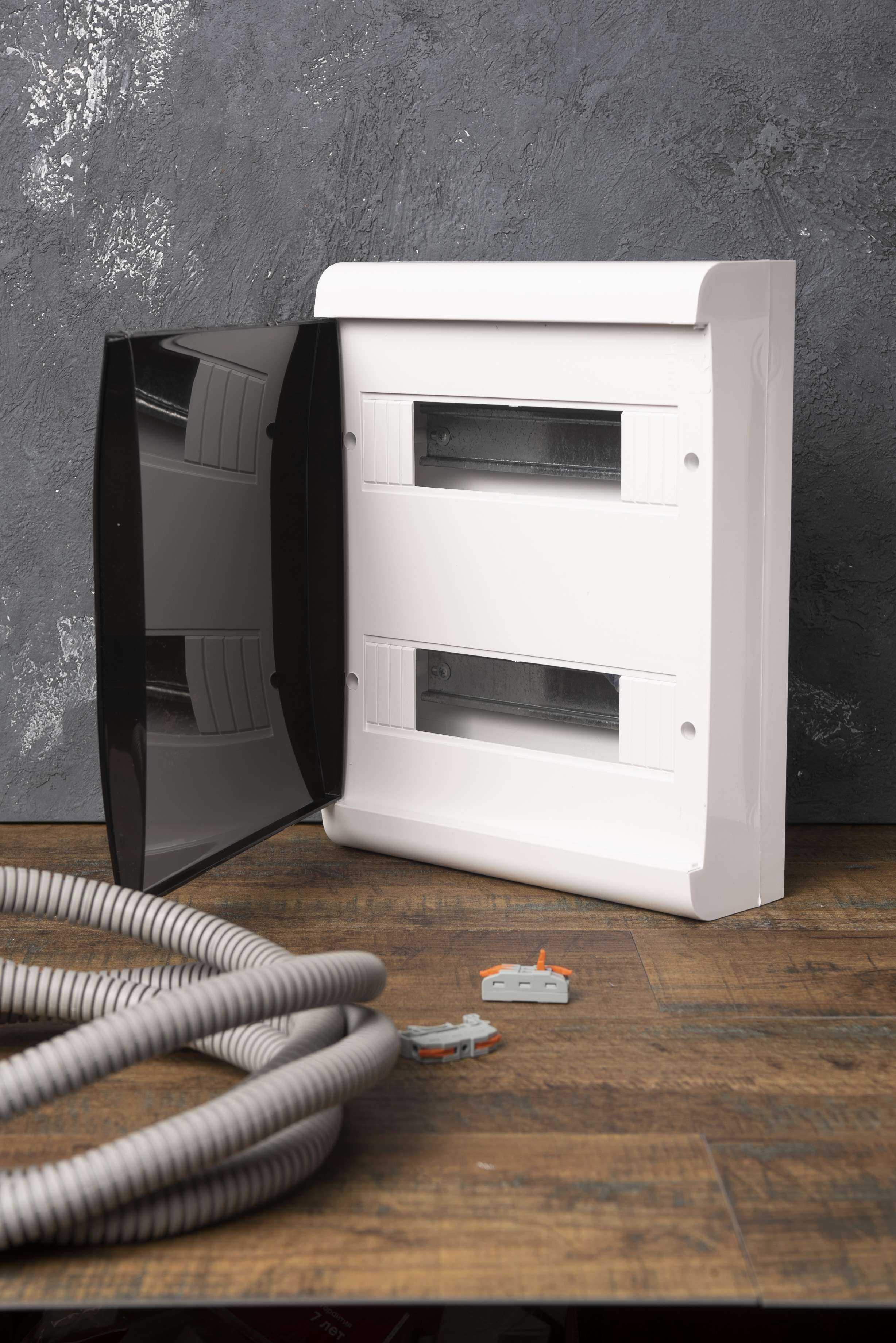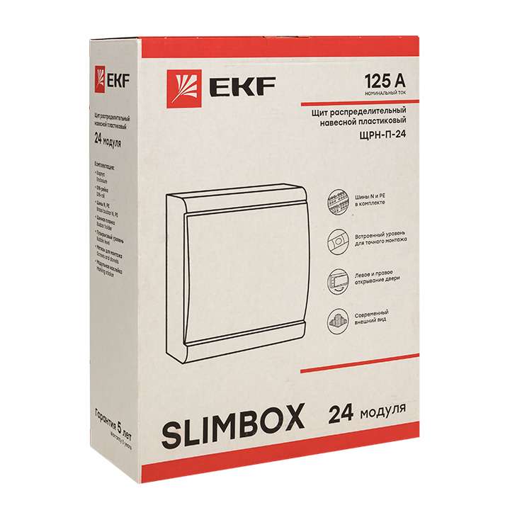 Щиты распределительные пластиковые SlimBox EKF PROxima предназначены для установки модульной аппаратуры: автоматических выключателей, УЗО, таймеров, счетчиков электрической энергии и т. д. Используются для электромонтажа в жилых, административных, торговых помещениях. Электрощиты изготовлены из прочного ABS-пластика глянцевого белого цвета. Имеют полноразмерную затемненную дверцу, что позволяет им эстетично вписаться в интерьер жилых и офисно-торговых помещений. Основание корпуса у навесных щитов имеет малую высоту, что делает сборку щита и подключение проводов более удобным за счет большего свободного пространства для сборщика.