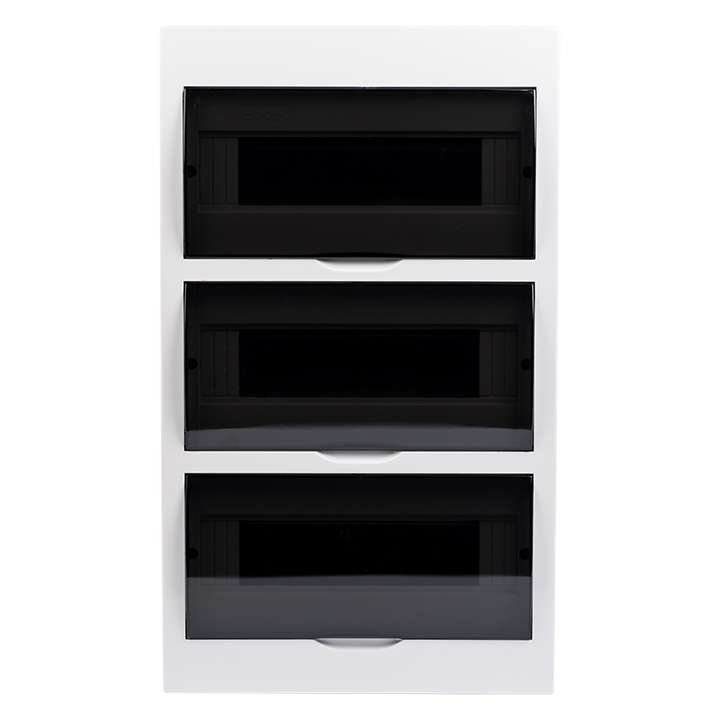 Щиты распределительные пластиковые ЩРн-П, ЩРв-П EKF PROxima предназначены для установки модульной аппаратуры: автоматических выключателей, УЗО, таймеров, устройств управления и т.д. Используются для электромонтажа в жилых, административных, торговых помещениях. Вертикальное открывание дверцы позволяет устанавливать бокс независимо от положения соседних стен. Электрощиты изготовлены из прочного ABS-пластика.