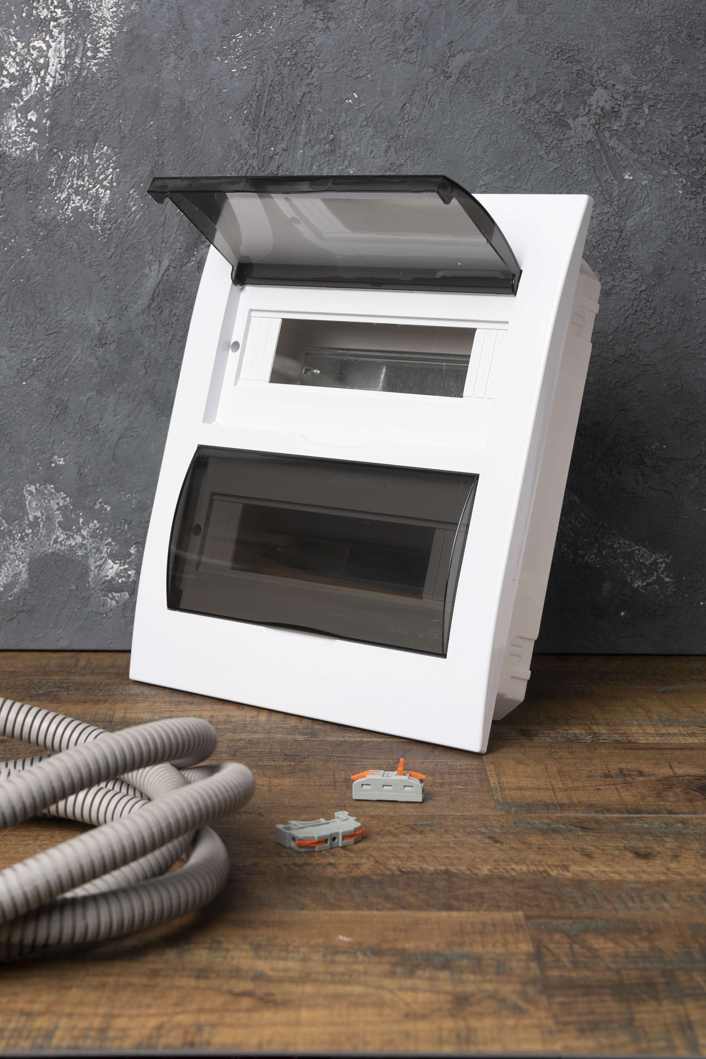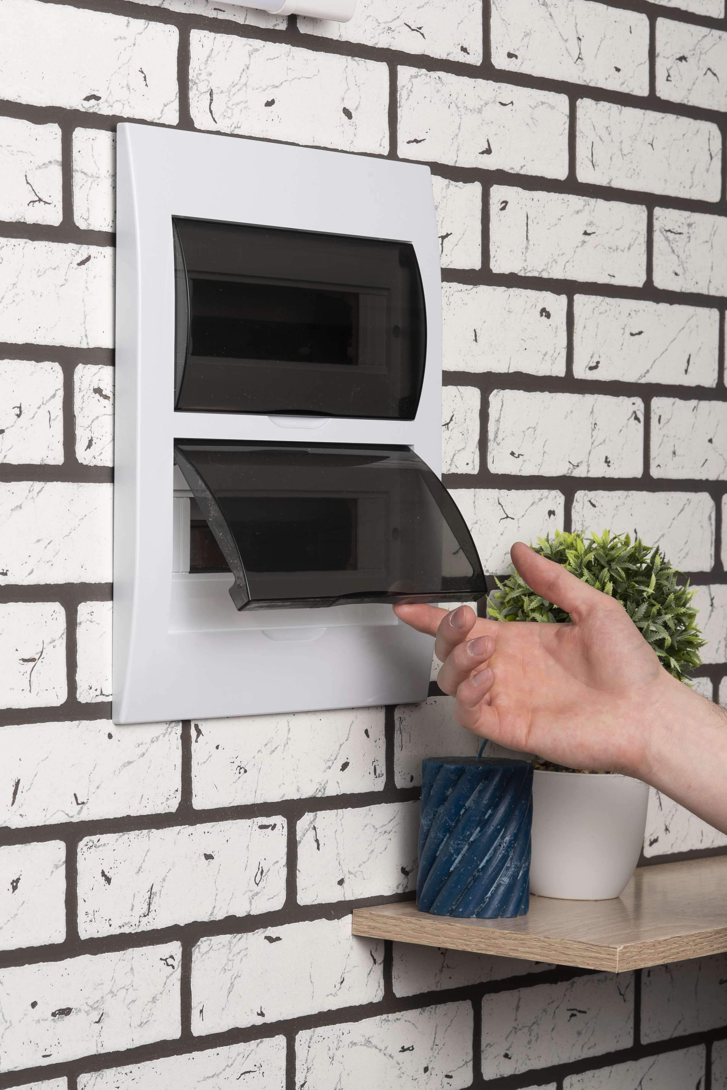 Щиты распределительные пластиковые ЩРн-П, ЩРв-П EKF PROxima предназначены для установки модульной аппаратуры: автоматических выключателей, УЗО, таймеров, устройств управления и т.д. Используются для электромонтажа в жилых, административных, торговых помещениях. Вертикальное открывание дверцы позволяет устанавливать бокс независимо от положения соседних стен. Электрощиты изготовлены из прочного ABS-пластика.