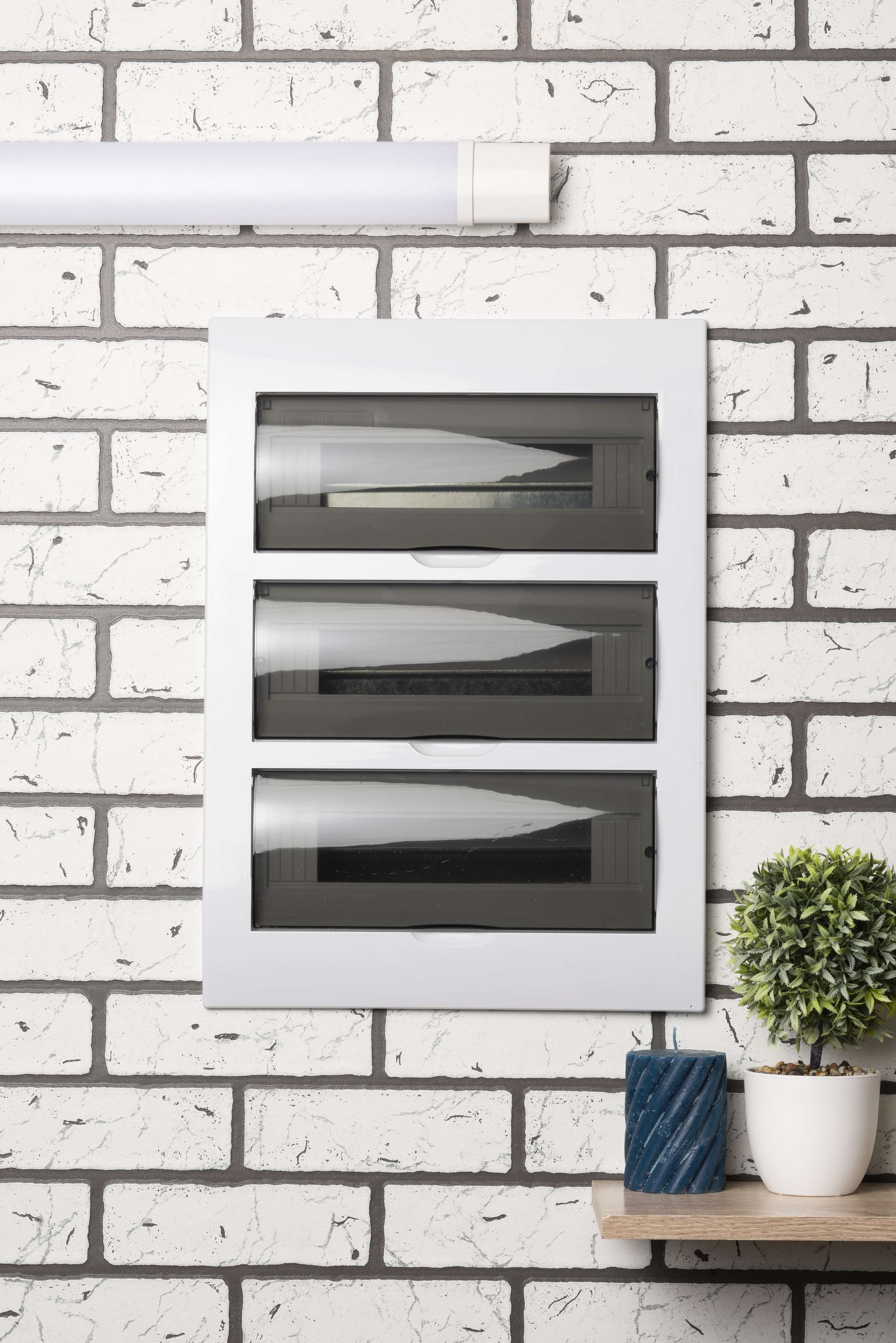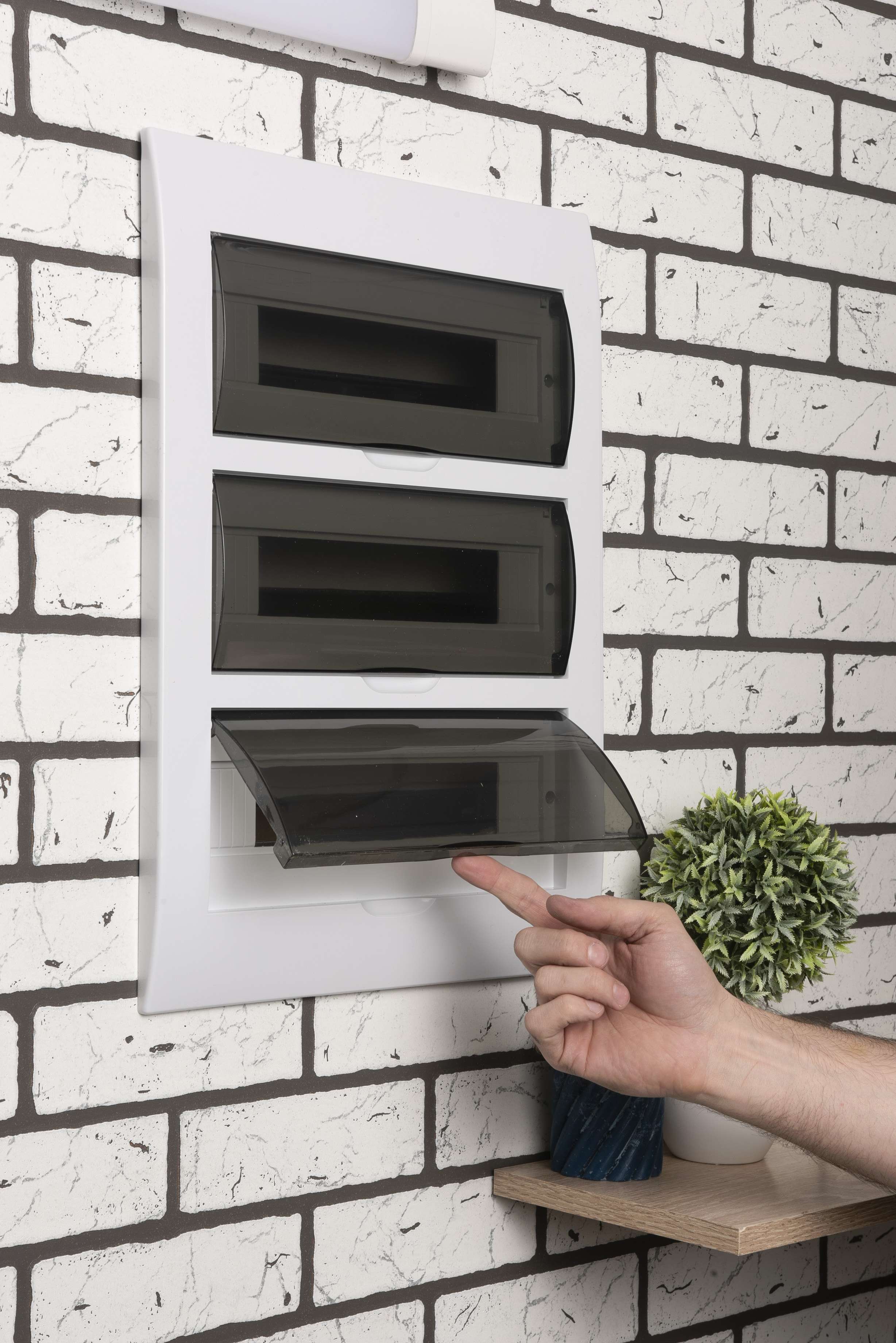 Щиты распределительные пластиковые ЩРн-П, ЩРв-П EKF PROxima предназначены для установки модульной аппаратуры: автоматических выключателей, УЗО, таймеров, устройств управления и т.д. Используются для электромонтажа в жилых, административных, торговых помещениях. Вертикальное открывание дверцы позволяет устанавливать бокс независимо от положения соседних стен. Электрощиты изготовлены из прочного ABS-пластика.