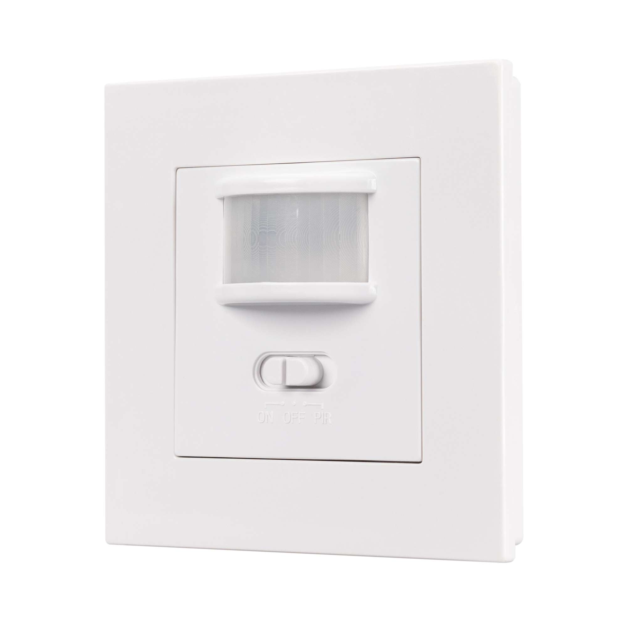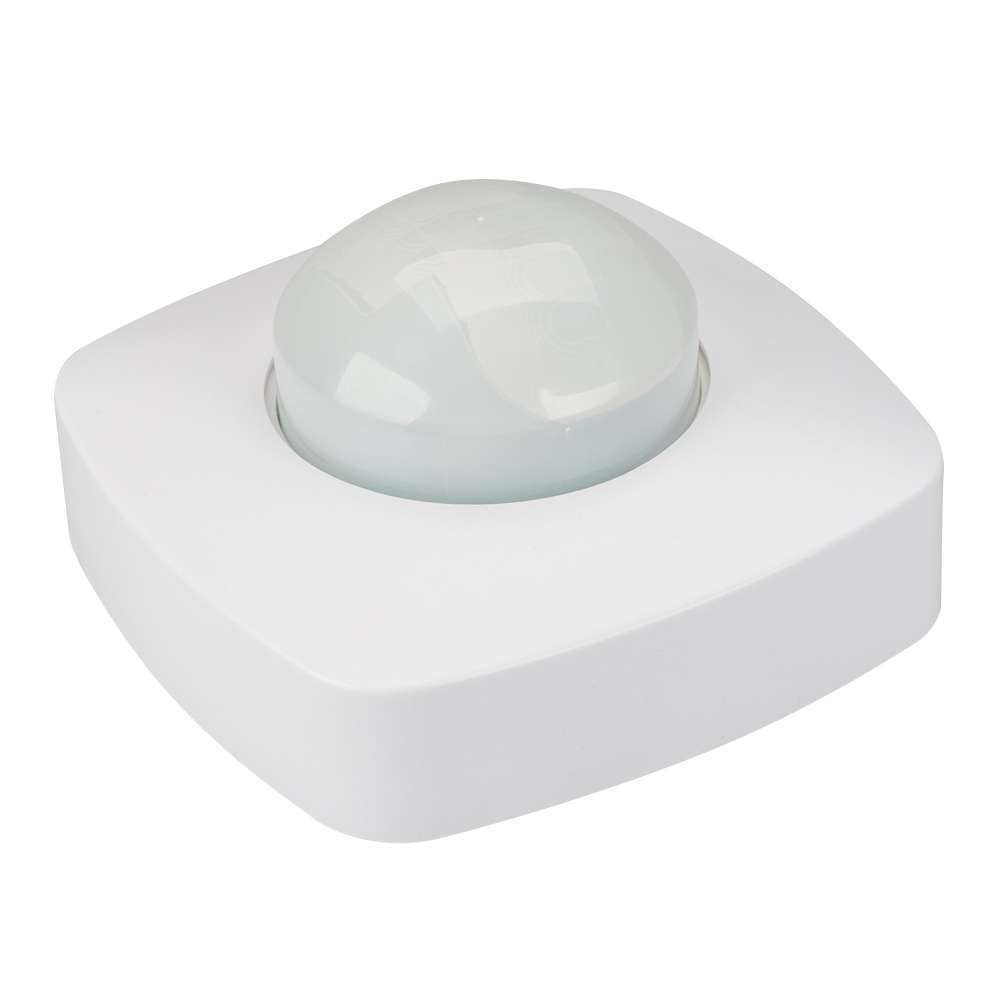 Инфракрасный датчик движения, совмещенный с датчиком освещенности. Высота установки 1 -1.8 м. Угол обнаружения 160°. Настройки: время отключения (10 c – 7 мин), зона срабатывания (до 9 м), освещенность (3-2000 лк). Максимальная нагрузка 500 Вт (для ламп накал-я и галогенных), 200 Вт (для энергосберегающих ламп), габаритные размеры (L×W×H) 81.95×82.1×44.4 мм.