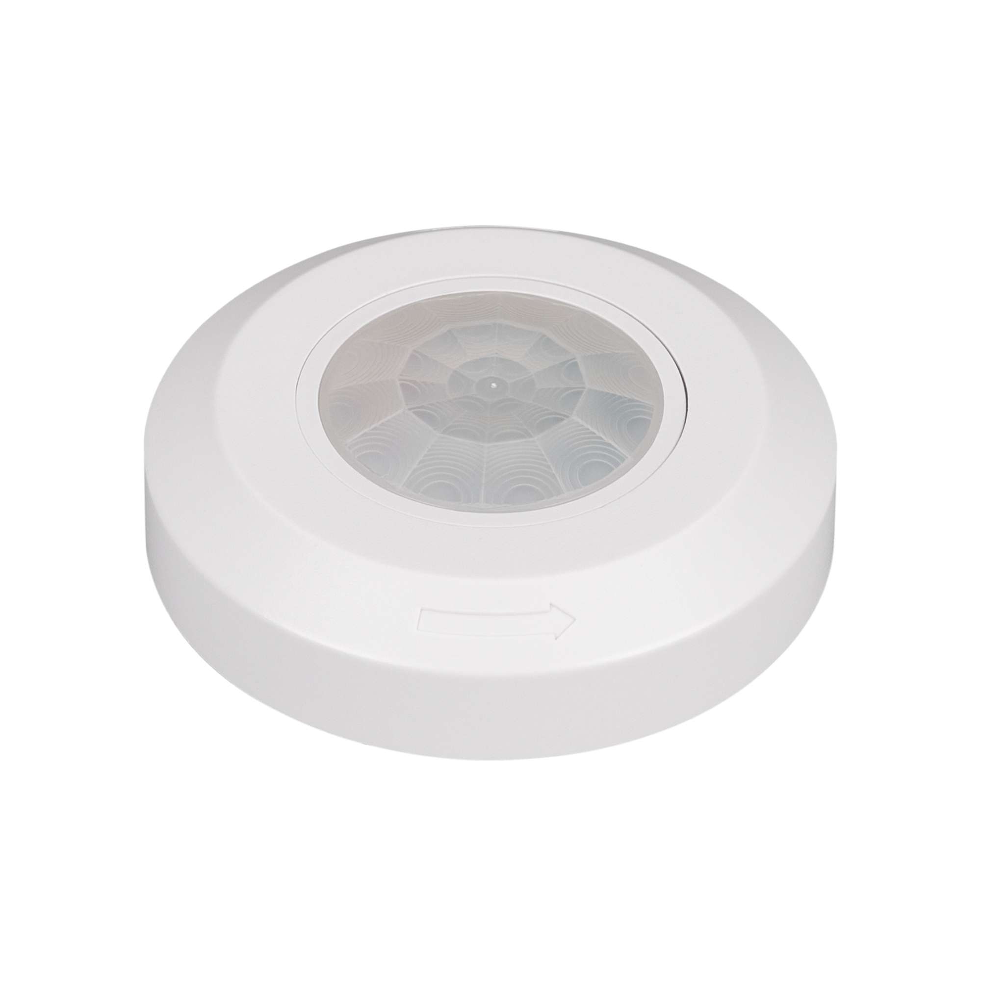 Инфракрасный датчик движения, совмещенный с датчиком освещенности. Высота установки 2.2 - 4 м. Угол обнаружения 360° в горизонтальной плоскости. Настройки: время отключения (10 c – 7 мин), радиус зоны срабатывания (8 м), освещенность (3-2000 люкс). Максимальная нагрузка 400 Вт (для ламп накал-я и галогенных), 200 Вт (для светодиодных и люминесцентных ламп), габаритные размеры (L×H) 76×20 мм.