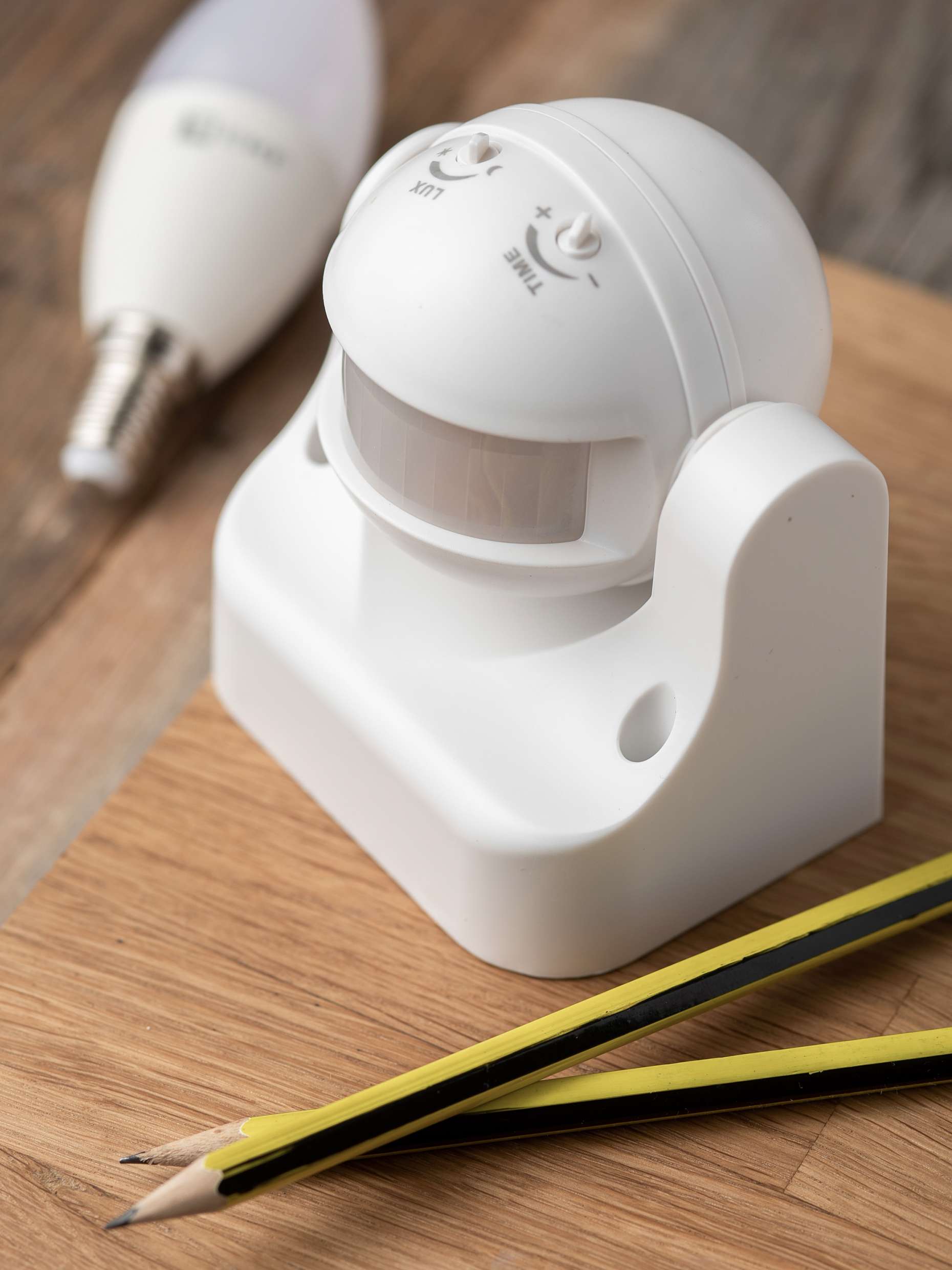 Датчик движения инфракрасный MS-39 предназначен для экономии электроэнергии за счет автоматического управления освещением и другими инженерными системами. Датчик реагирует на движение людей и других объектов в зоне действия сенсора, принцип работы датчика основан на отслеживании уровня ИК-излучения в поле зрения. Датчик MS-39 предназначен для установки на стену накладным способом. Сенсор датчика имеет регулируемый в вертикальной плоскости поворотный механизм, что позволяет нацелить его на необходумую зону. Рекомендуется использовать датчик в корридорах, подъездах, различных проходных зонах. Возможно использование на улице под навесом. Алгоритм работы: при возникновении движения в поле зрения датчика встроенное электромеханическое реле (рассчитано на полную мощность 1200Вт) коммутирует подключенную нагрузку. После этого нагрузка находится под напряжением в течение заданного времени (от 10 сек. до 7 минут, время настраивается) и выключается. Дополнительно датчик имеет функцию контроля освещенности.