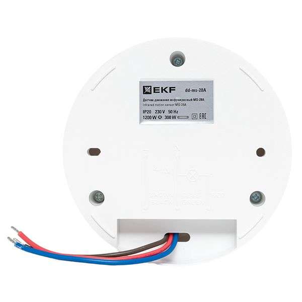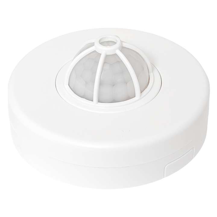 Датчик движения инфракрасный MS-28A предназначен для экономии электроэнергии за счет автоматического управления освещением и другими инженерными системами. Датчик реагирует на движение людей и других объектов в зоне действия сенсора, принцип работы датчика основан на отслеживании уровня ИК-излучения в поле зрения. Датчик MS-28A предназначен для накладного монтажа на потолок. Рекомендуется использовать датчик в кладовках, гардеробных и других помещениях с временным пребыванием людей. Алгоритм работы: при возникновении движения в поле зрения датчика встроенное электромеханическое реле (рассчитано на полную мощность 1200Вт) коммутирует подключенную нагрузку. После этого нагрузка находится под напряжением в течение заданного времени (от 10 сек. до 7 минут, время настраивается) и выключается. Дополнительно датчик имеет функцию контроля освещенности. Если освещенность в зоне детекции выше заданного уровня (настраивается), то нагрузка включаться не будет, что позволяет дополнительно экономить электроэнергию.