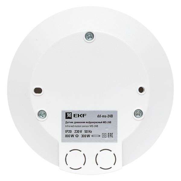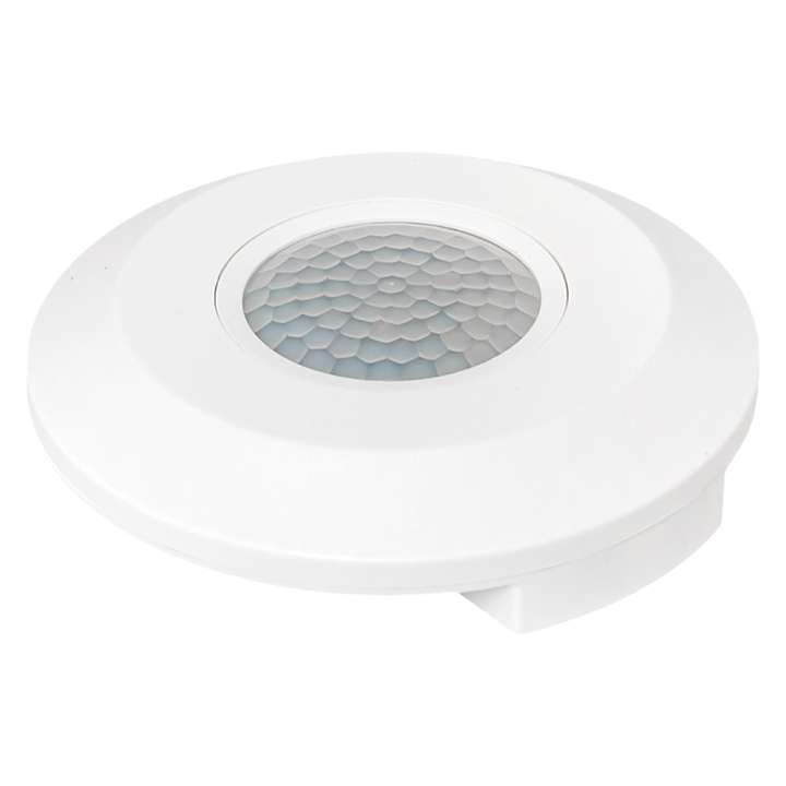 Датчик движения инфракрасный MS-24B предназначен для экономии электроэнергии за счет автоматического управления освещением и другими инженерными системами. Датчик реагирует на движение людей и других объектов в зоне действия сенсора, принцип работы датчика основан на отслеживании уровня ИК-излучения в поле зрения. Датчик MS-24B предназначен для накладного монтажа на потолок. Рекомендуется использовать датчик в кладовках, гардеробных и других помещениях с временным пребыванием людей. Алгоритм работы: при возникновении движения в поле зрения датчика встроенное электромеханическое реле (рассчитано на полную мощность 800Вт) коммутирует подключенную нагрузку. После этого нагрузка находится под напряжением в течение заданного времени (от 10 сек. до 7 минут, время настраивается) и выключается. Дополнительно датчик имеет функцию контроля освещенности. Если освещенность в зоне детекции выше заданного уровня (настраивается), то нагрузка включаться не будет, что позволяет дополнительно экономить электроэнергию.