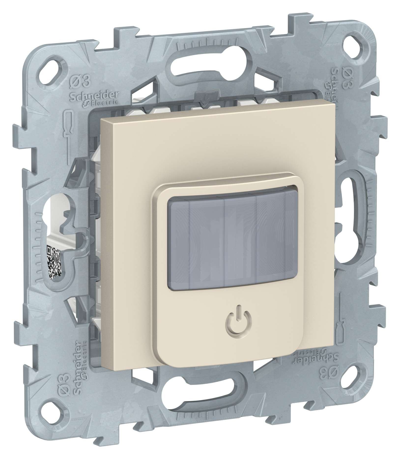 Датчик движения Schneider Electric UNICA NEW (бежевый) с винтовыми зажимами на номинальный ток 10 A. - 3-проводное подключение (требуется нейтраль). - Зона обнаружения движения: 8 м вперед, 8 м по бокам. - Дистанционное управление с помощью неограниченного количества вспомогательных кнопочных выключателей. - Автоматическое определение нагрузки