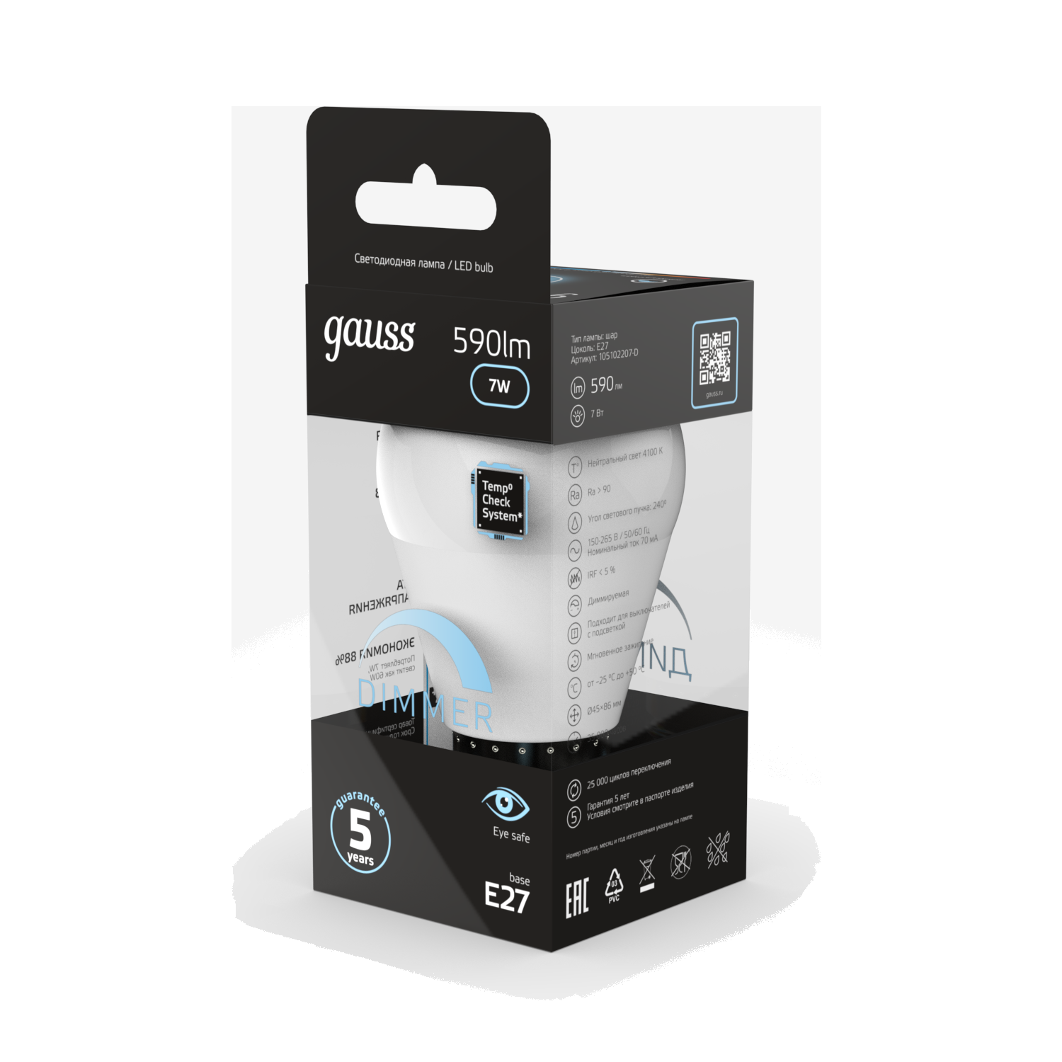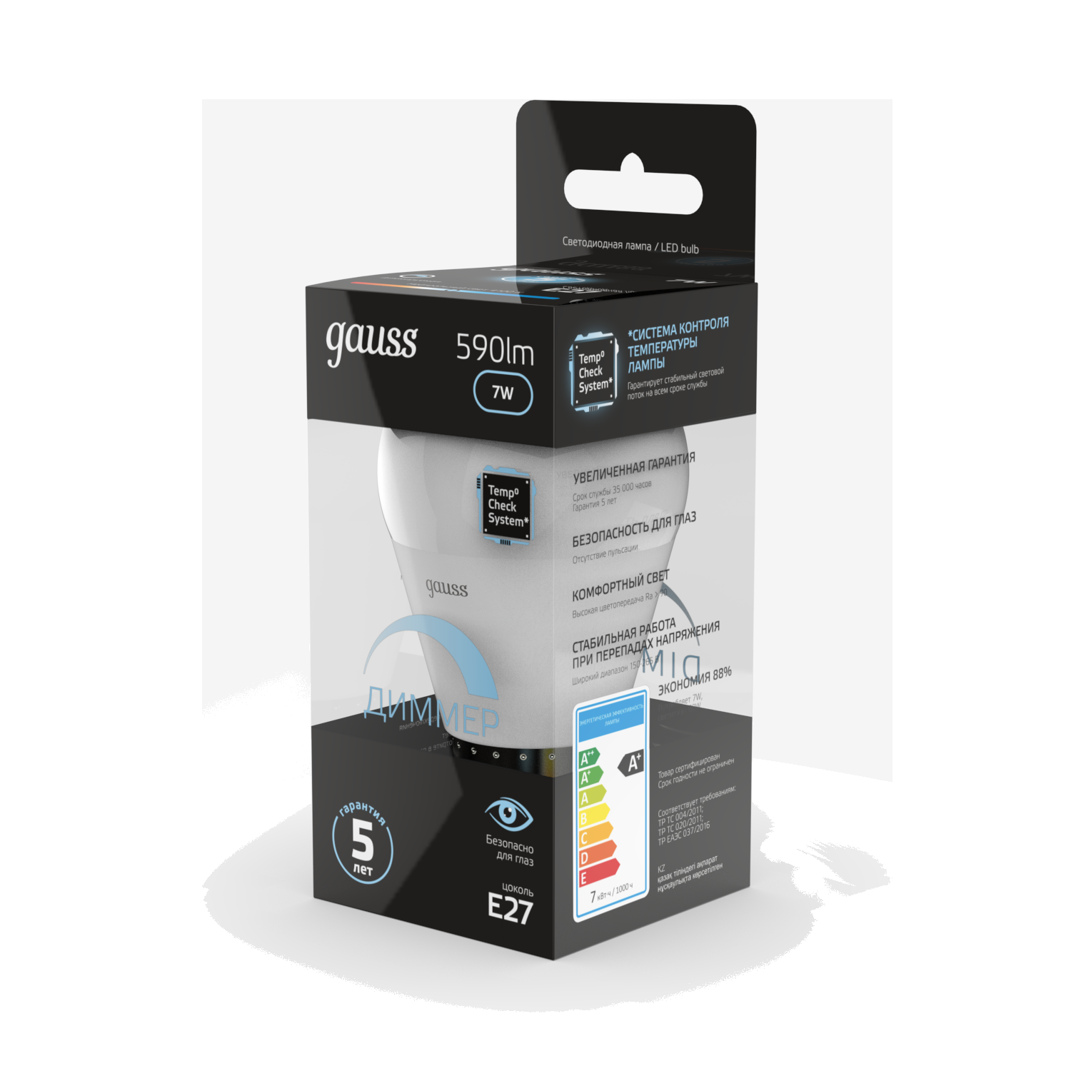 Премиальная серия ламп Gauss Black — надежные источники освещения высокого качества. Благодаря использованию качественных комплектующих и современных технологий лампы этой серии имеют один из самых высоких показателей энергоэффективности и долговечности. Уровень пульсации светового потока в светодиодных лампах Gauss ниже 5%, поэтому они создают комфортный и безопасный свет. Покупатель ламп серии black может быть уверен, что получает безопасный для глаз, яркий и комфортный свет. Передовые технологические решения обеспечивают стабильный световой поток даже при перепадах напряжения. Длительный срок гарантии — решение, основанное на уверенности в качестве продукции и ее долговечности.