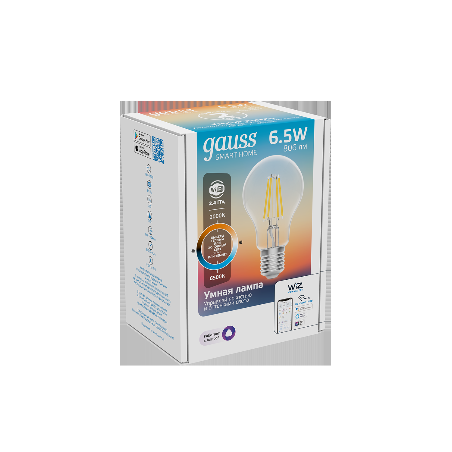 «Умные» филаментные лампы благодаря прозрачной колбе освещают комнаты более равномерно, чем большинство светодиодных ламп других видов. И потому они могут с успехом использоваться как в общем, так и в местном освещении. В серии Gauss Smart Home доступны две группы филаментных ламп. Лампы первой группы внешне схожи с классическими лампами накаливания, и потому прекрасно смотрятся в люстрах и бра. В эту группу входят лампы A60, C35, CF35, диммируемые (DIM), с теплым золотистым свечением (2500 К и 2700 К), и диммируемые с изменяемой цветовой температурой (CCT+DIM) в диапазоне от 2700 К до 6500 К, то есть от золотисто-желтого до холодного белого света, в прозрачной колбе. На выбор предлагаются светодиодные источники света мощностью 4,5 Вт и 7 Вт. Ко второй группе LOFT относятся декоративные филаментные лампы с прозрачной колбой золотистого цвета, которые благодаря своей оригинальной форме не требуют обрамления в виде плафонов или абажуров. В этой группе есть как лампы с изменяемой яркостью и теплым золотистым све