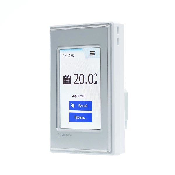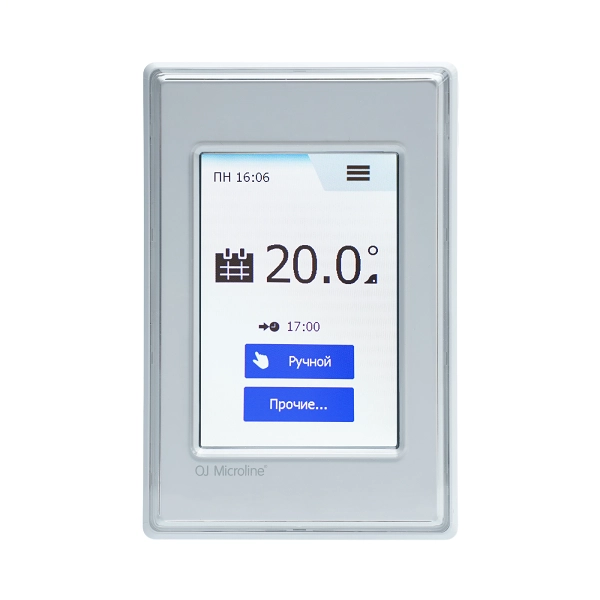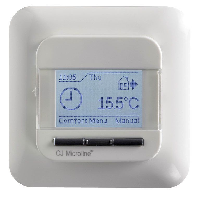 OJ OCD6-1999 - программируемый терморегулятор с двумя датчиками: датчик температуры пола и встроенный датчик температуры воздуха. Простой в навигации и создает оптимальный комфорт при минимально возможном потреблении энергии.