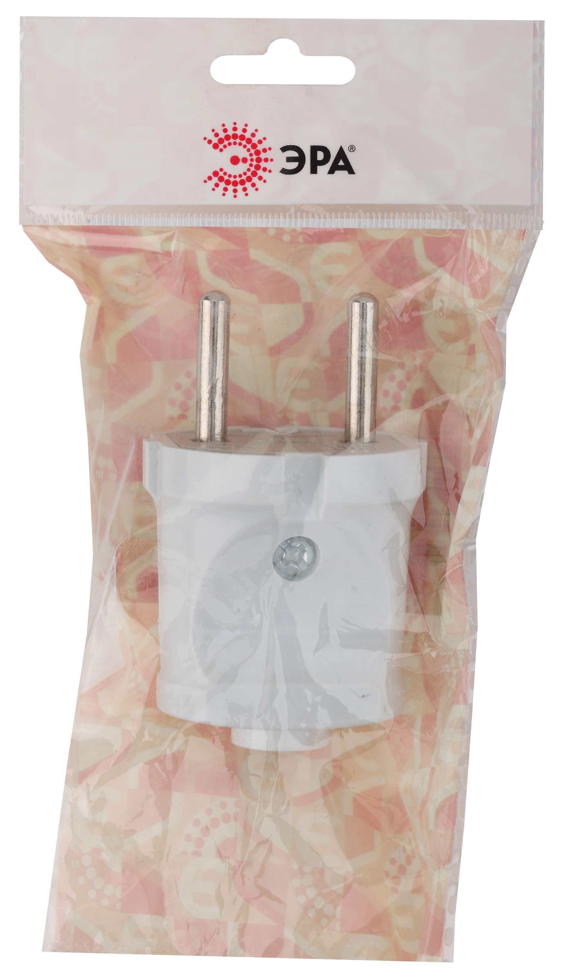 Вилка штепсельная ЭРА, максимальная мощность - 10 A / 2200 В (кабель до 2x1мм2), ABS-пластик