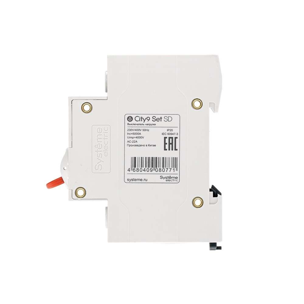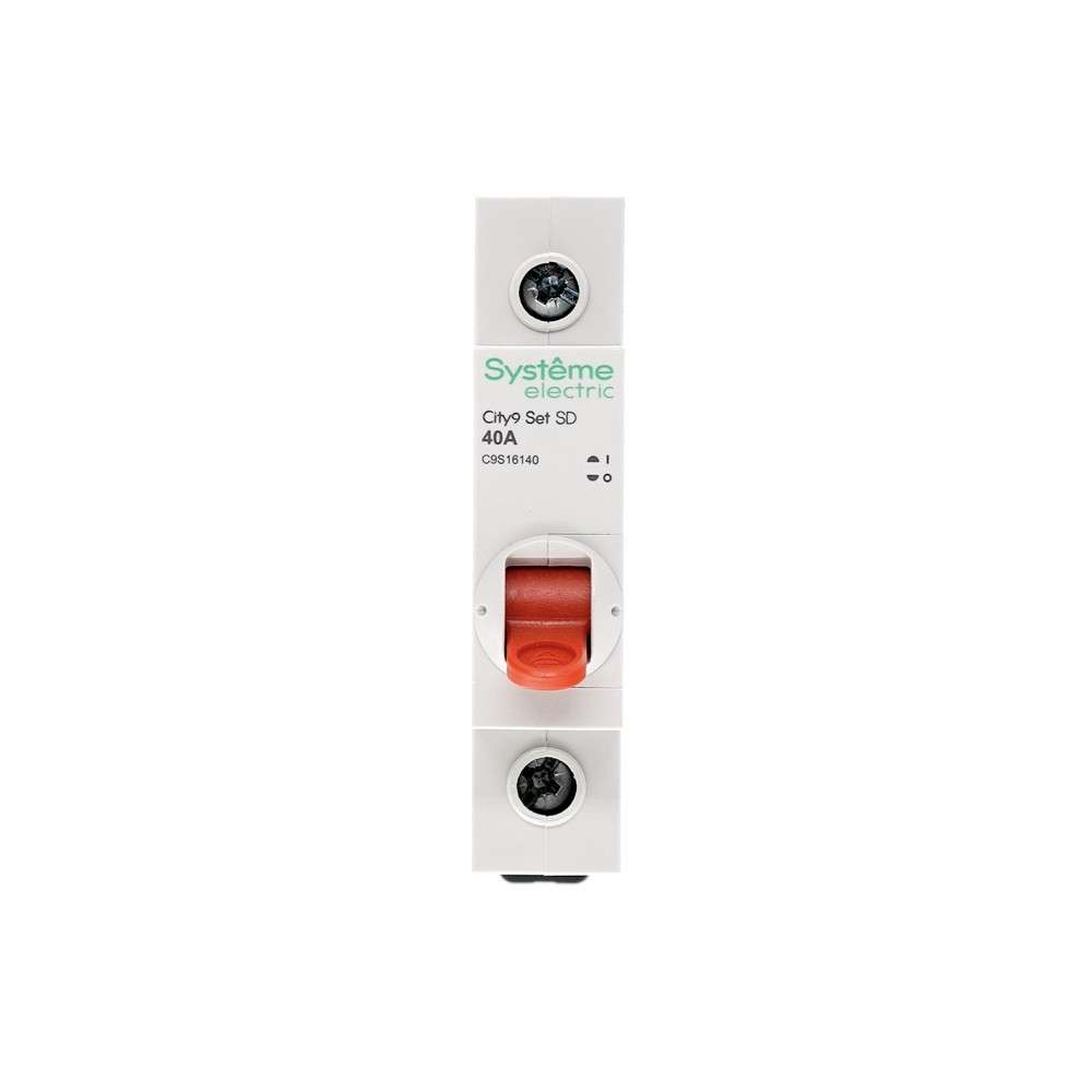 Выключатель-разъединитель серии City9 Set Systeme Electric, 1-полюсный, номинальный ток 40 А, с красной рукояткой управления. Предназначен для включения и отключения нагрузок в электрических сетях напряжением 230 В. Категория применения AC-22A. Двойной разрыв цепи обеспечивает гарантированное отключение питания и отсутствие сваривания контактов. Крепление на DIN-рейку шириной 35 мм.
