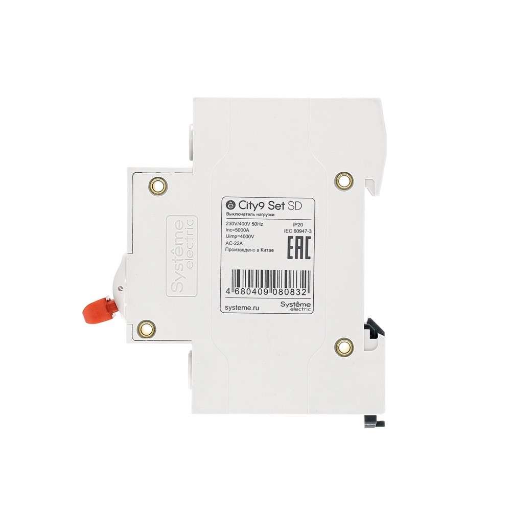 Выключатель-разъединитель серии City9 Set Systeme Electric, 2-полюсный, номинальный ток 63 А, с красной рукояткой управления. Предназначен для включения и отключения нагрузок в электрических сетях напряжением 400 В. Категория применения AC-22A. Двойной разрыв цепи обеспечивает гарантированное отключение питания и отсутствие сваривания контактов. Крепление на DIN-рейку шириной 35 мм.