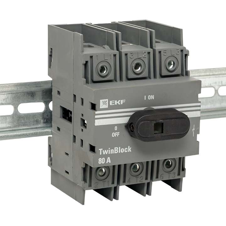 Рубильники серии TwinBlock предназначены для пропускания номинальных токов, включения и отключения электрических цепей номинальным напряжением до 690 В переменного тока частотой 50 и 60 Гц в устройствах распределения электрической энергии. Выключатели-разъединители серии TwinBlock (модели 40-800 А) имеют возможность подключения дополнительного четвертого полюса.